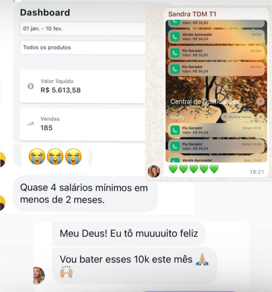 • Resultados apresentados por alunos são reais, porém individuais — variam conforme dedicação, estratégia, execução e contexto; não constituem promessa nem garantia de ganhos, faturamento ou qualquer resultado específico.